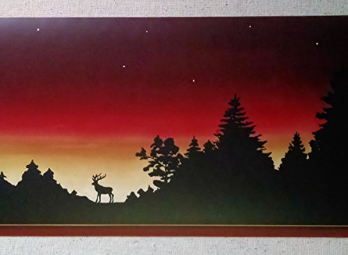 -. Title : Wallpaper Border Lodge Log Cabin Moose Sunset Silhouette Stars At Night
