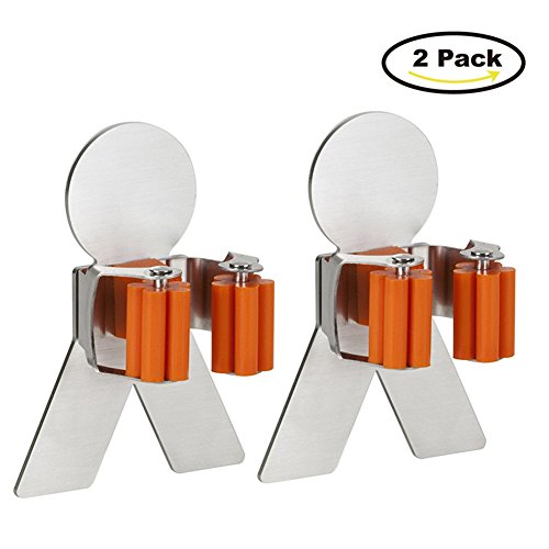 Lumi SUS304 Stainless Steel Mop Broom Holder Organizer, 2 Pcs 3M Self Adhesive Wall Mounted Mop Hooks Broom Hanger Holder with Spring Clip for Bathroom and Kitchen(Herringbone)