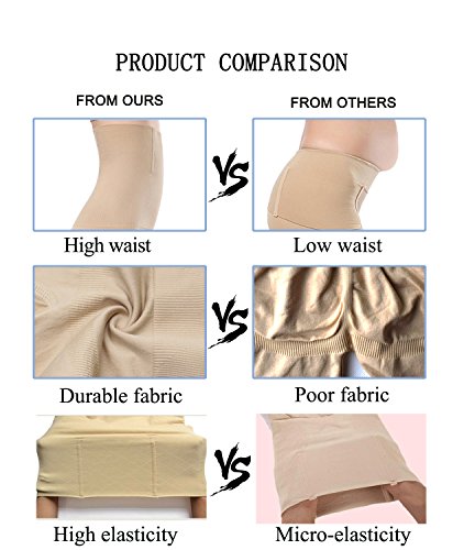 -. Feature : HIGH WAIST & LIGHTWEIGHT FABRIC. Materials: The hi-waist tummy control boyshorts is made of 90% Nylon, 10% Spandex, which is strong, elastic, stretchable. Sweat-free comfort, antibacterial, moisture wicking. High quality fabric breathable and comfortable enough to be worn all day long. / STEEL BONES & DOUBLE COMPRESSION. The double lining on the waist provides abdomen and waist control, 4 built-in spiral steel bones which is flexible and durable, soft as plastic bones, can bend easily but recover quickly to origin, offer good support for the front and back,avoiding crimping, making you a slim waist. / W-SHAPED HIP & EXTENDED LEGS. The plain underwear has W-shaped hip line design, can be better wrapped buttocks, enhance hip. Extended leg design makes the thigh will not be too tight, so you can also be worn as leggings and safety pants. / TUMMY CONTROL & BUTT LIFTER. High waist shapewear slightly enhance your bottom curve and hide your flabby skin immediately without a trace. Perfect for wearing it everyday, or special occasions like dating, parties, night club and more! / APPLICATION & NOTE: This lightweight panties is easy care, washable and reusable. No one will ever know you have them on, but they will notice your sexy new curves. Please check the size details before you make purchase decision