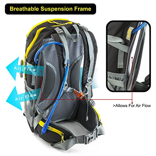 -. Title : Thrive! versatile 40L Backpack with breathable comfort suspension frame, 3-liter easy-clean water bladder, rain cover: hiking, travel, biking, trekking, laptop, charity