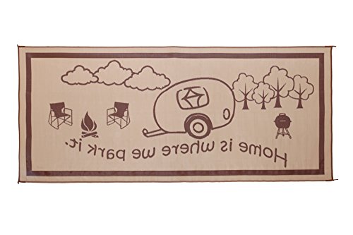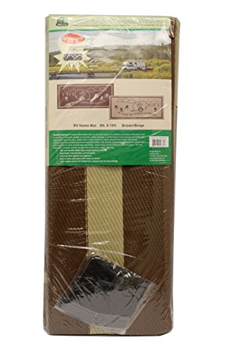 This reversible mat can be used indoors or outdoors, at home on the patio, with your RV, in the park or garden, at picnics, while camping, or at the beach. It's also ideal under pet cages and in exercise pens. It's easy to clean with a broom or water sprayed from a hose. The woven construction dries quickly to prevent mold and mildew. The polypropylene material is coated with UV protection to resist sun damage and fading. Corner loops can be staked to hold it in place, and the mat folds easily into a compact size for storage. Color Matching: Matching colors on the internet can be very difficult. Different monitor settings may not show exact hues. We do our best to represent the colors as accurately as possible.Feature
