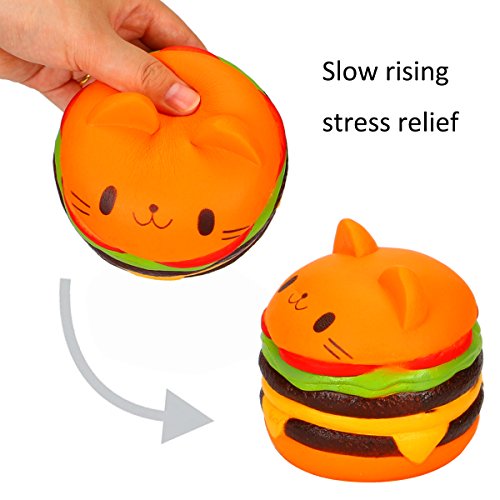 STRESS RELIEF - You can use the cat hamburgers squishy for relaxing when you are annoyed and want to relax yourself.