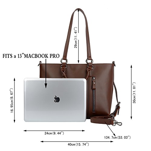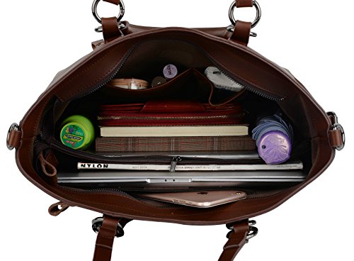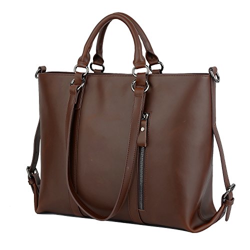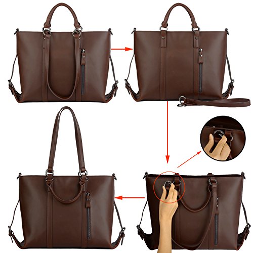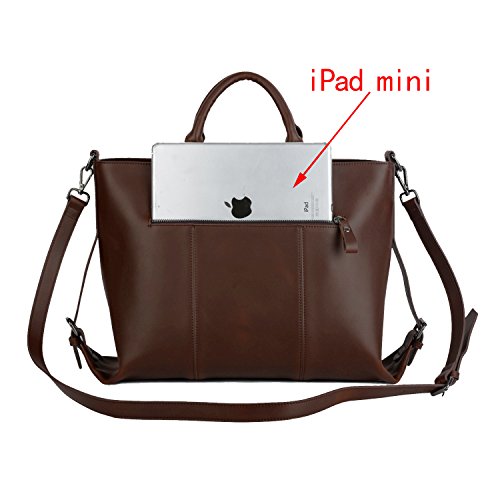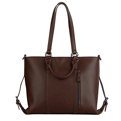 YALUXE Women's Urban Style 3-Way Crazy Horse Leather Work Tote Shoulder Bag Dark Brown
