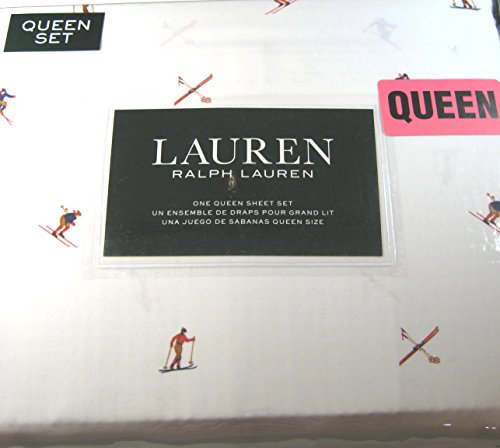 Lauren 4Pc. Queen Sheet Set Snow Skiers 100% Cotton White