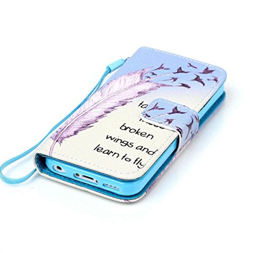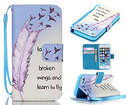 iPhone SE Case,iPhone 5S Case, iPhone 5 Case, Welity Fly Birds Feather Quotes Saying [ Wristlet ][ Kickstand ] PU Leather Clutch Pouch Wallet [Credit Card/Cash Slots] Flip Cover for iPhone SE/5/5S