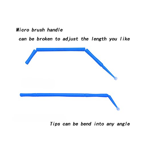 -. Feature : MultiPurpose Tools:Micro brushes perfect for latisse,eyelash extension removal, dental use,nail art, painting,crafting projects,cleaning small gap, etc / Saving You Money:Micro Applicators Brushes wonot absorb too much of the precious product, saving even more / Easy to Use:Micro brush handle can be broken to adjust the length.Tips can be bend into any angle ,so getting into small places is a breeze now / High Quality:Non-linting,clean and sanitary,durable& efficient brush applicators / More Choices:You will get 4 different colors with 4 different sizes brush tip ends,quite handy.