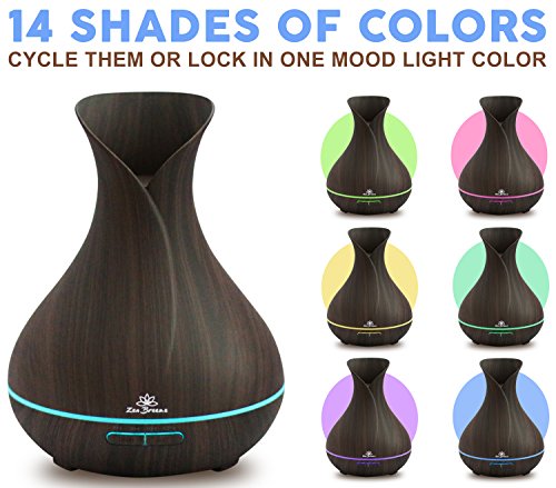 The Brand New 2017 Model of ZenBreeze Essential Oil Diffuser unites scientific innovation with contemporary design to create an essential oil diffuser that's the perfect complement to your home or office. This attractive wood grain diffuser uses vibrating sound waves to create an ultra-fine aromatherapy mist. This diffusion method doesn't utilize heat, which maintains essential oil integrity and holistic properties. Run your hands through the mist, you will notice that it is cold not hot. This stunning aroma diffuser would be a beautiful addition to the health conscious home or any health, beauty or spa related business Features: Works continuously for about 10 hours with a single fill. Automatic safety shut off when the water runs out or you can set the timer for 60, 180 or 360 minutes. Very Easy to clean and maintain Quiet operation ensures tranquil surroundings Can also be used as a night light Difusor de aceites esenciales, aromaterapia, humidificador