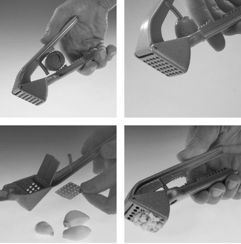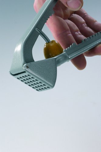 - HANDY: Presses whole unpeeled cloves, so your hands don't touch the raw garlic, Lever mechanism requires minimal effort to press pulp and juice through the sieve