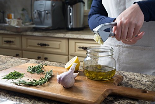 - MADE IN GERMANY PRODUCT TOP RATED ALL PURPOSE PRESS: Garlic is universally loved – but not on the hands. Instead of chopping it, use this well-designed Aluminum tool to minimize your hands' contact with the pungent garlic juices.