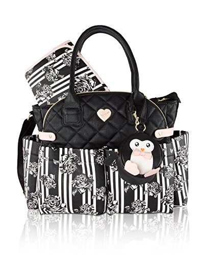 Sure to be an instant favorite For new moms. Betsey gives mom a hand with this Weekender Diaper Baby bag. Designed to hold everything you and baby might need for a day out in town. Features all over PVC exterior, multifunctional exterior and interior pockets and zipper closure, the insulated bottle holder and matching pad makes on-the-go changes a breeze.