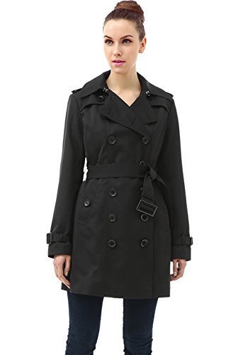 Time-tested details enhance the look and durability of a classic double-breasted trench coat. For added versatility, the hood and belt are removable. This mid length trench features button-down gunflaps, storm flap in back, epaulets, hook-and-eye collar, and belted cuffs.Feature
