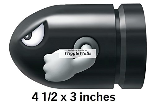-. Binding : Kitchen -. Brand : WiggleWalls -. Color : Multi Color -. EAN : 0787392259659 -. Feature : Fast, Fun and Easy Home Decorating / Repositionable Peel and Self Stick Vinyl Wall Decal / Great for party decorations and gifts / Genuine Licensed Product with FAST Shipping in USA / It is Bullet Bill! -. IsAutographed : 0 -. Label : WiggleWigal LC -. Manufacturer : WiggleWigal LC -. Model : SPMRO16 -. PackageQuantity : 1 -. ProductGroup : Home -. ProductTypeName : HOME -. Publisher : WiggleWigal LC -. Size : 4 1/2 by 3 inches -. Studio : WiggleWigal LC -. Title : 4 Inch Super Mario Bros Brothers Removable Wall Decal Sticker Art Nintendo 64 SNES Home Kids Room Decor Decoration - 4 1/2 by 3 inches -. UPC : 787392259659