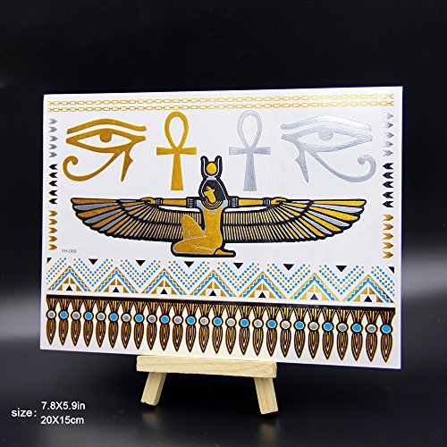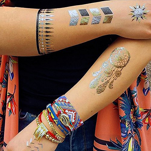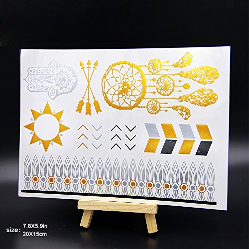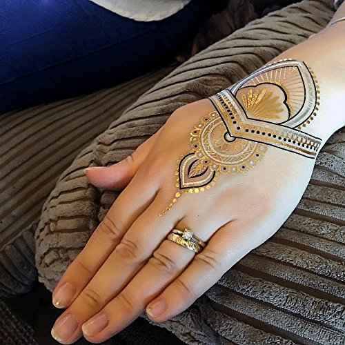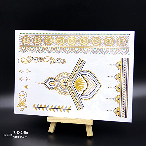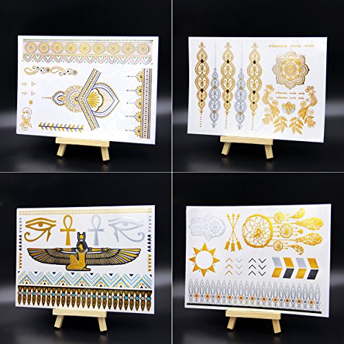 Leoars 4 Sheets Metallic Gold Flash Temporary Tattoos Paper Festival Flash Tattoos Henna Tattoo Stickers for Women Girl