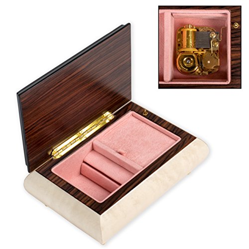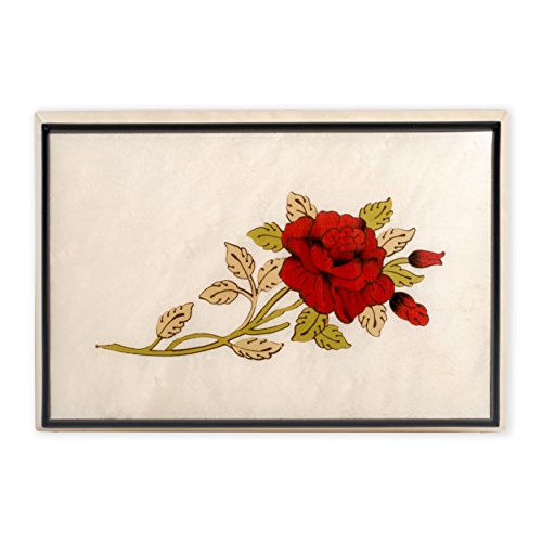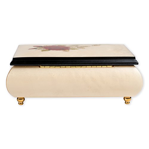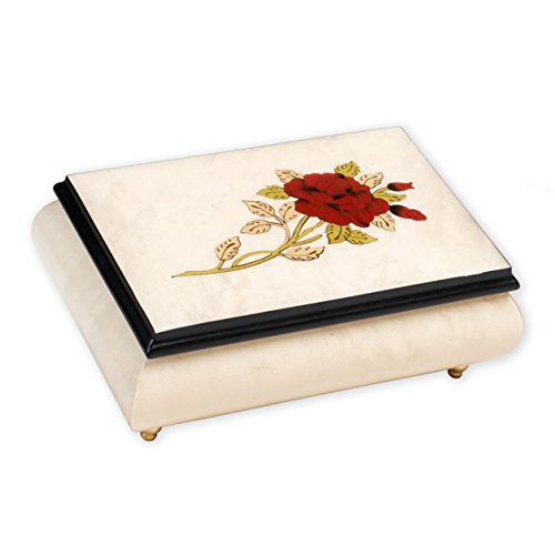 Red Rose Floral White Matte Italian Hand Crafted Inlaid Maple Wood Musical Box Plays Bolero