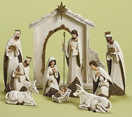10-Piece Ivory and Gold Religious Christmas Nativity Figurine Set