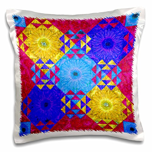 3dRose pc_53892_1 Flower Collage Abstract Bright Frame and Colors of Blues, Yellows, Red-Pillow Case, 16 by 16"
