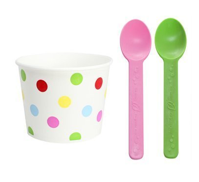 [ Momoka's Apron ] 48 ct Treat (Hot / Cold Ice Cream) Paper Cups with Pink & Green Spoons Set - Polka Dot (12 oz)