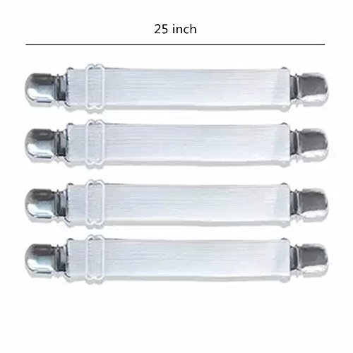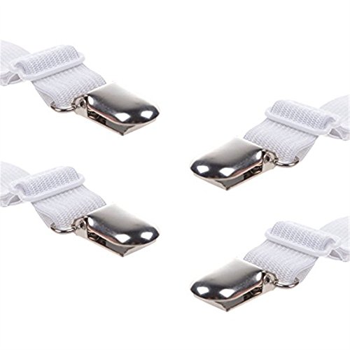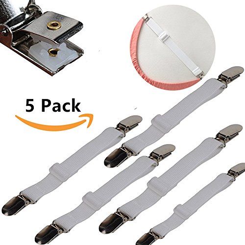 Koogel 5 Pcs Sheet Band Straps Suspenders White Adjustable Bed Corner Holder Elastic Fasteners Clips Grippers Mattress Pad Cover Fitted Sheet