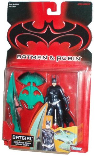 -. Binding : Toy -. Brand : Batman & Robin Movie -. EAN : 0076281638546 -. Feature : Includes : Batgirl with Battle Blade Blaster and Strike Scythe / Figure measured approximately 5 inch tall / For age 4 and up. -. IsAdultProduct : 0 -. Label : Kenner -. Manufacturer : Kenner -. Model : 63854 -. MPN : Bat-6338 -. PackageQuantity : 1 -. PartNumber : Bat-6338 -. ProductGroup : Toy -. ProductTypeName : TOYS_AND_GAMES -. Publisher : Kenner -. Studio : Kenner -. Title : Batman and Robin 1997 Series 5 Inch Tall Action Figure : Batgirl with Battle Blade Blaster and Strike Scythe -. UPC : 076281638546
