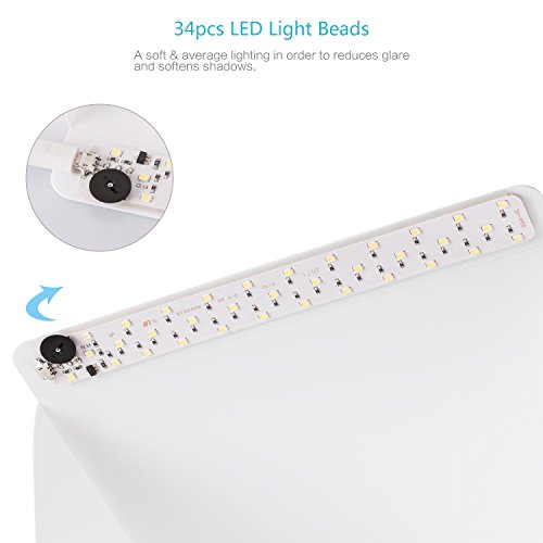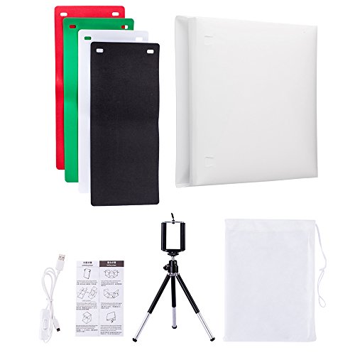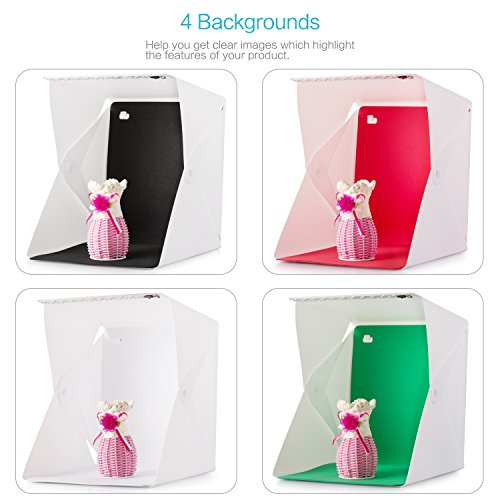 Photo Light Box Features: * Snap photos of your gadgets and small gifts anytime and anywhere! * 34pcs bright lED beads provide with uniform light. * 4 colors backdrop make this shooting tent meets different shooting requirements. * Portable design,easy to store and carry, suits for shooting high quality picture for small products at anyhwere and anytime. * LED light powered via a USB cable. * As the lighting source quantity and variaty were limited due to its size and portability. We recommend you to used as a temporary studio for its excellent easy-to-use feature and portability.