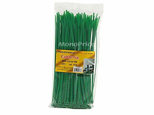 Monoprice Cable Tie 8 inch 40LBS, 100pcs/Pack - Green