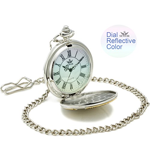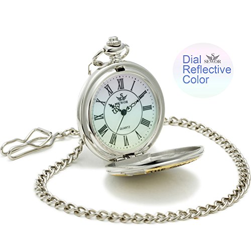 -. Title : SEWOR Father's Day Quartz Pocket Watch Shell Dial Gold & Sliver Case Family Xmas Gift