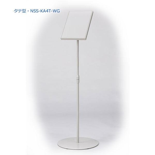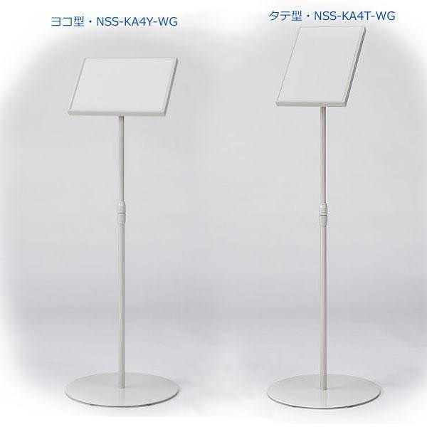 片面傾斜型タイプのサインスタンドです。板面はA4サイズ。高さ、板面の角度が調節可能。色は明るいホワイトグレーです。 |