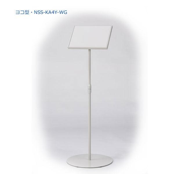 | 片面傾斜型タイプのサインスタンドです。板面はA4サイズ。高さ、板面の角度が調節可能。色は明るいホワイトグレーです。 |