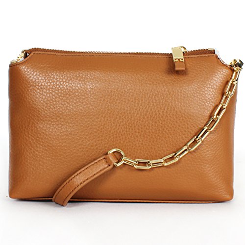 -. Feature : Gold tone hardware, pebbled leather / Magnetic snap flap closure / Inter 1 zip coin pocket, 2 slip pockets / Chain and leather strap with 23'' drop for crossbody or shoulder wear / Measures Approximately: 9.5" L x 6.5"H X 2"D
