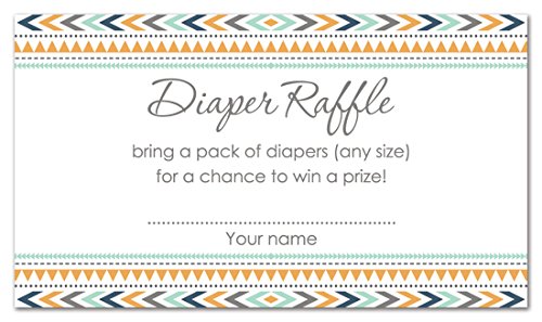 - Who doesn't like a raffle? These cute raffle cards feature navy, gold, aqua and grey tribal pattern. Diaper raffles are a great way to add more excitement to your baby shower.