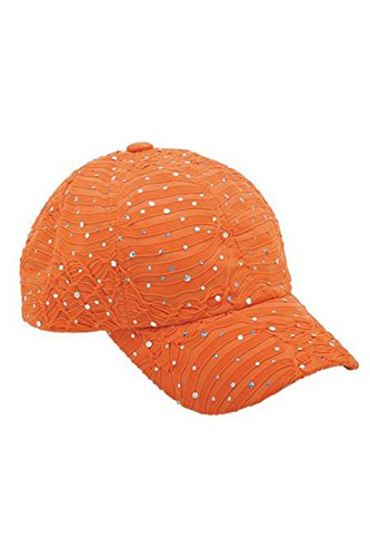 (Greatlookz)/Accessories/Hats/DIRECT FROM USA/Glitzy Game Crystal Sequin Trim Women's Adjustable Glitter Baseball Cap ORANGE