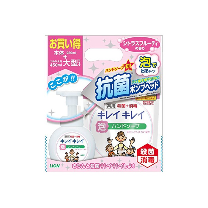 원본상품명: キレイキレイ ?用 泡ハンドソ?プ シトラスフル?ティの香り 本?ポンプ 250ml+詰替大型 450ml (??部外品)