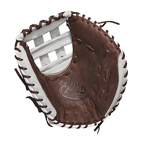 Studio : Wilson Publisher : Wilson Binding : Misc. Product Description The new 33" Aura softball catcher's mitt is 100% game-ready on Day 1. This model is perfect for developing the skills needed to control the game from behind the plate. The Aura is the ultimate glove for the developing fastpitch player. With its game-ready leather and fastpitch-specific patterns, the Aura will help take any developing player's game to the next level. - 33 Inch Catcher's Model - Dual Post Web - New Brown and Ivory colorway - Fastpitch-specific model - Game-ready top grain leather - Dual Welting for a durable pocket 0