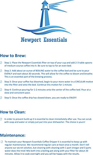 -. Brand : Newport Essentials -. Color : silver, black -. EAN : 0760842156500 -. Feature : RICH BREW, CLEAN TASTE. Great heat retention and no sediment while combining richness and nuance of French Press with clean flavor of drip. / EASY CLEAN. The pour over coffee cone conveniently separates from drip rack. You can easily clean out the grounds, quickly rinse the cone, and dry. Pour-over cone is also dishwasher safe. / PRECISION DESIGN. High quality, food-grade 18/8 (304) stainless steel is precisely cut, with double filtered walls, and also extremely durable and reusable. / BREW a delicious coffee like a pro, with our detailed instructions and tips. / 100% SATISFACTION GUARANTEED. We provide the best customer service possible and honor returns if you are not 100% satisfied with this elegant brew.. -. Label : Newport Essentials -. Manufacturer : Newport Essentials -. Model : 6321009 -. MPN : 6321009 -. PartNumber : 6321009 -. ProductGroup : Kitchen -. ProductTypeName : KITCHEN -. Publisher : Newport Essentials -. Studio : Newport Essentials -. Title : Newport Essentials Pour Over Coffee Filter: Stainless Steel Reusable Coffee Dripper and Brewer with Pour Over Coffee Stand -. UPC : 760842156500