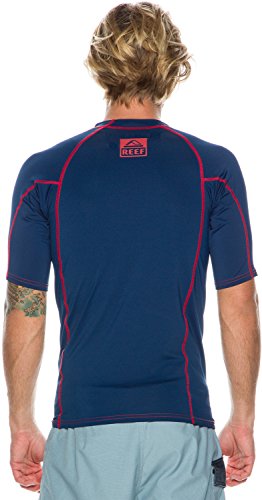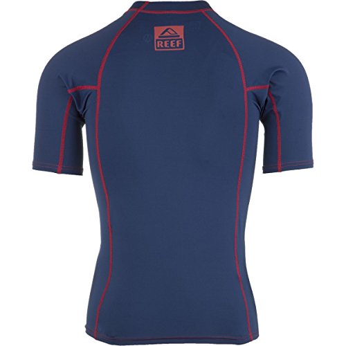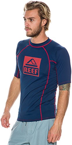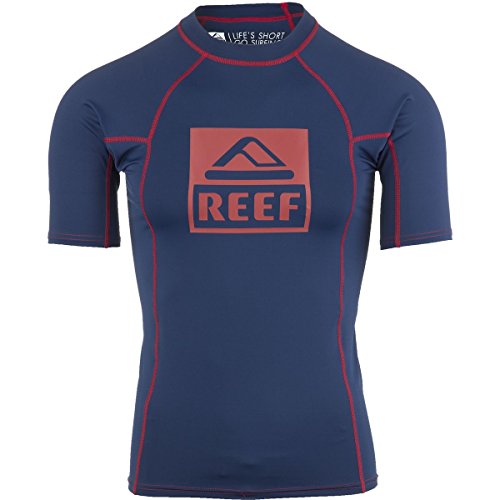 -. Binding : Misc. -. Brand : Reef -. Department : mens -. Feature : The most popular sandal brand in the world, Reef always reflects the casual attitude of the beach / Originated in 1984, the Reef brand is defined by the elite class of Reef ambassadors / Reef riders have included Bobby Martinez, Sofia Mulanovich, Rob Machado and World Champion Mick Fann / Reef is all about finding that special place and savoring the feeling no matter where you may be -. IsAdultProduct : 0 -. Label : Reef -. Manufacturer : Reef -. Model : Reef -. NumberOfItems : 1 -. PackageQuantity : 1 -. ProductGroup : Apparel -. ProductTypeName : SWIMWEAR -. Publisher : Reef -. Studio : Reef -. Title : Reef Logo SS Rash Guard - Navy