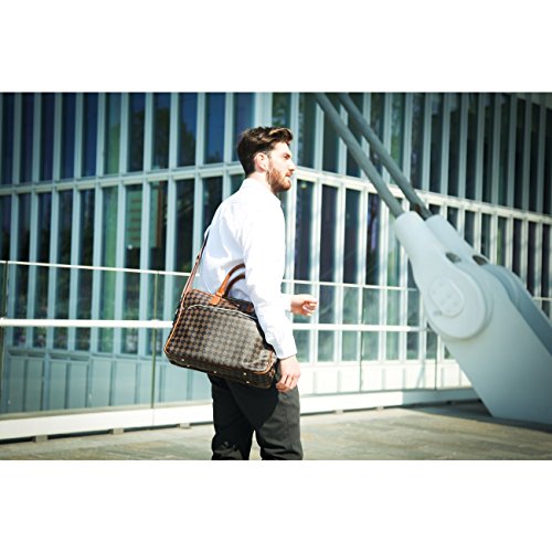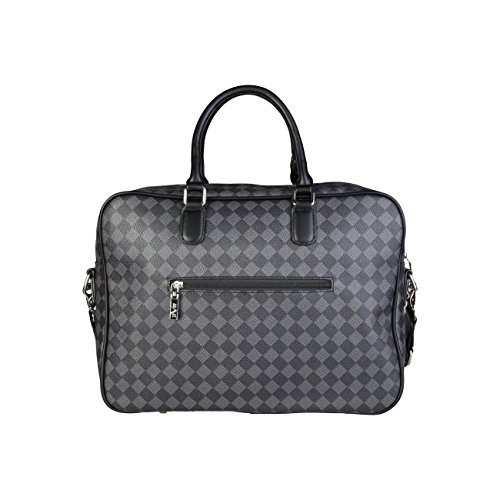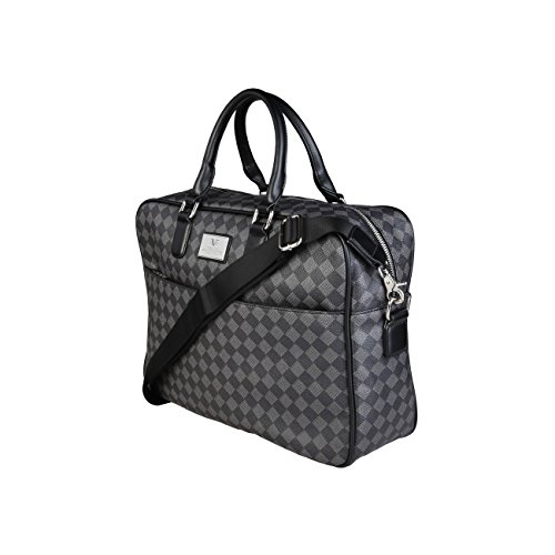 Studio : V 1969 Publisher : V 1969 Binding : Apparel Product Description Laptop bag Polyurethane coated canvas, rhombus pattern, eco-leather finishing Adjustable and removable nylon strap ? Frontal zip pocket, small back pocket, multi-pockets inner organization: 1 zipped pocket, 2 patch pockets Fully lined with washable and branded fabric Metal external zip, branded zip details Plaque metal logo 40x30x12 cm 0