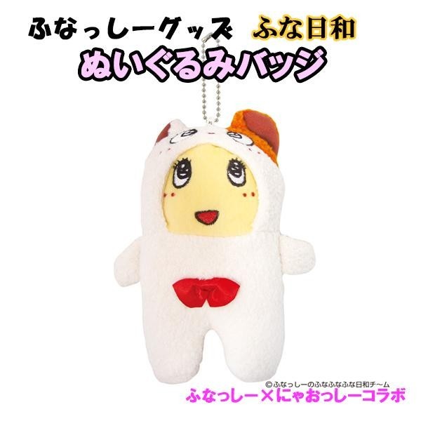 ふなっしーがにゃおっしーをかぶったかわいいぬいぐるみバッジです♪