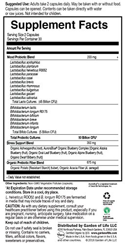 -. Title : Garden of Life Probiotic and Mood Supplement - Dr. Formulated Mood+ for Digestive and Gut Health, Shelf Stable, 60 Capsules