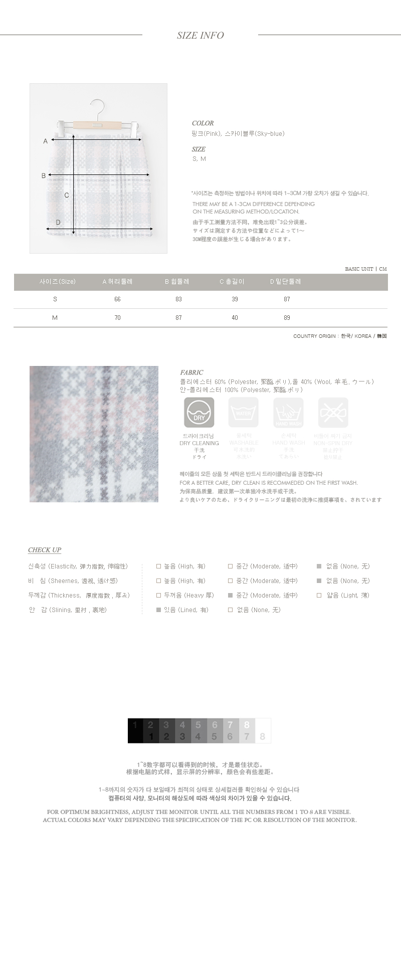 크리미한 컬러감으로여성스러운 룩을 연출하는 스커트에요!소프트한 울 함유의 소재감으로겨울시즌 무난하게 연출하기 좋구요크리미한 컬러감으로 여성스러운 룩을연출해 주는 스커트랍니다~체크패턴이 밋밋함없이 포인트되며미니한 기장감으로 날씬한바디라인까지 보여주는 아이템이구요!과하지않은 디자인으로 다양한 룩에데일리하게 활용되는 미니스커트에요^^