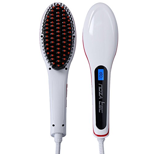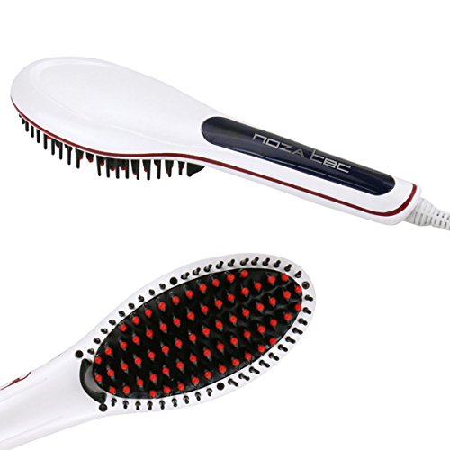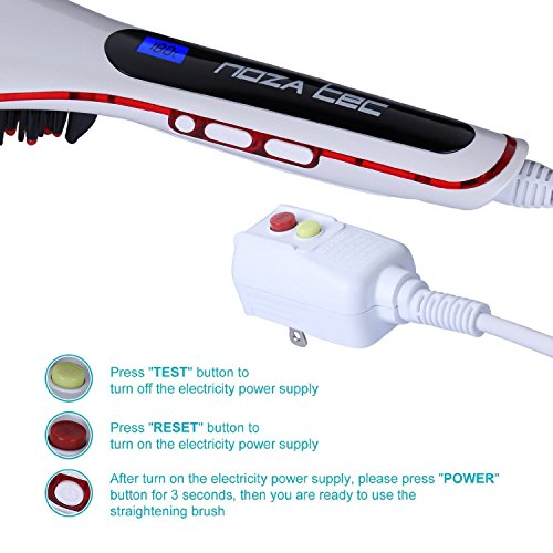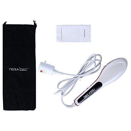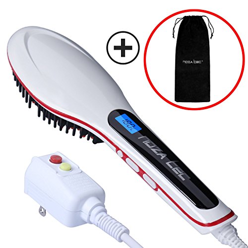 { Upgrade Version } New 3 in 1 Noza Tec Anti Scald Static Ceramic Heating Detangling Hair Brush for Faster Straightening Styling, Anion Massage Straightening Iron White + Black Bag