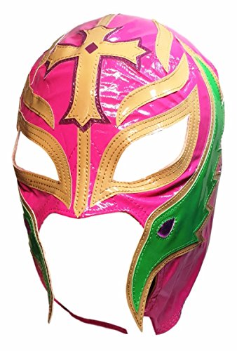 -. Title : WWE REY MYSTERIO Kid Size Pink With Tan and Green Trim Replica MASK