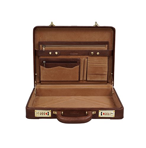 -. Title : Premium Leather Attache Briefcase Dual Combination Lock (Tan) - Clubb