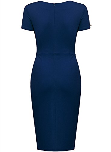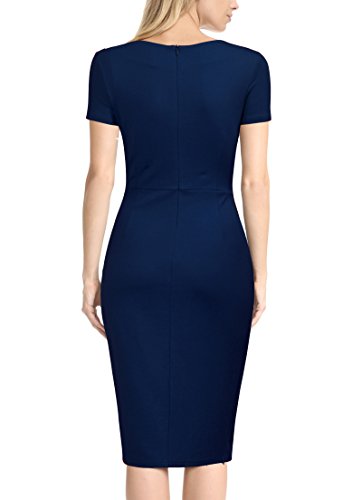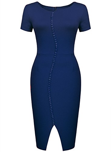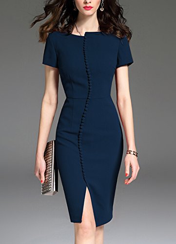 REPHYLLIS Women's Deep-V Short Sleeve Button Zipper Pencil Office Dress