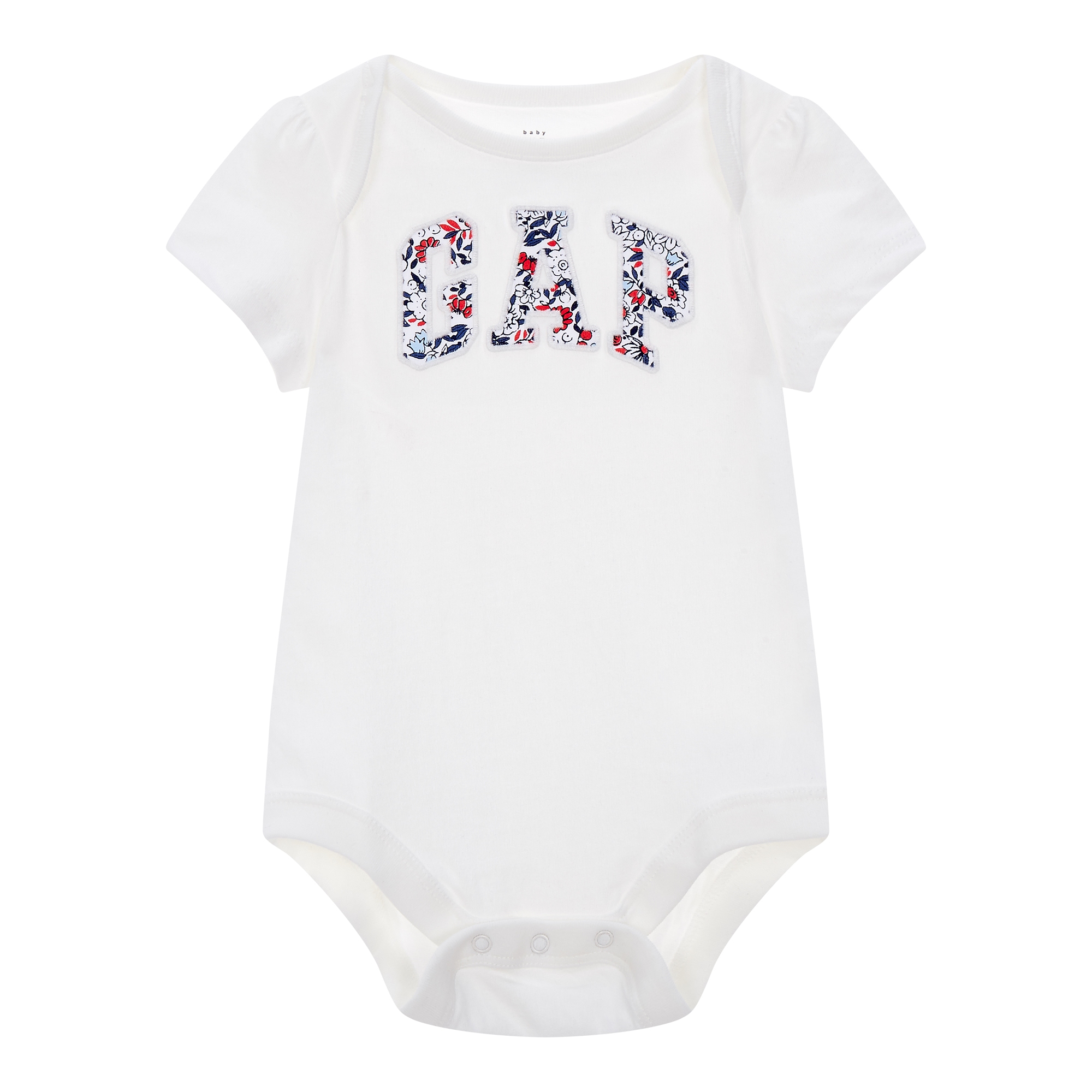 - 플로럴 프린트의 갭 로고 아플리케가 있는 반팔 바디수트