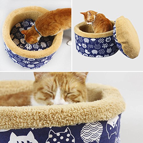 Dopet 묘베드 애완동물 베드 일본풍 소형견/고양이/소동물용 멋쟁이 애완동물 하우스 애완동물 쿠션 씻을 수 있 애완동물용 둥실둥실 베드 침상 캣 베드 애완동물 소파 캔버스 소재 2WAY