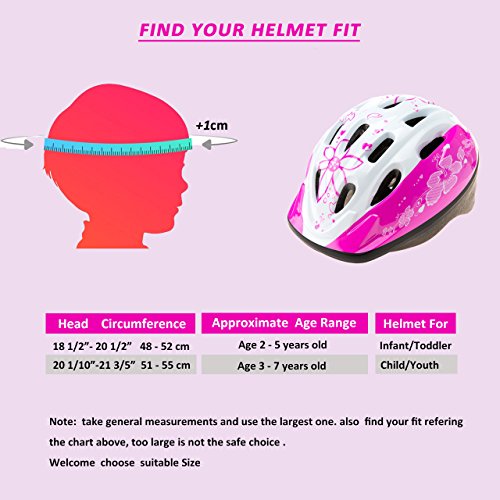 BeBeFun Girl and Boy Kids Bike Helmet Accurate Adjustable Size Helmet for Infant Toddler Child with CPSC certificated Multi-sport Helmet