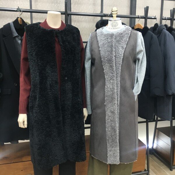몽글한 양털디자인의 조끼 소개해드려요~ 양털디자인으로 코트나 자켓제품은 흔하지만 조끼제품은 흔한 디자인은 아닌데요~ 요제품은 양털라인으로도 입으실수 있고! 무스탕 느낌으로도 착용가능하신 한가지 제품으로 두가지 느낌으로 착용가능한 양면 조끼입니다! 실용성이 좋아서 옷 하나로 캐쥬얼함과 분위기를 동시에 가질수 있는 제품이에요! 니트나 티셔츠를 이너로 입으시고 가볍게 걸쳐주시면 좋아요^^ 총장길이는 55사이즈 기준으로 97.5cm 입니다.