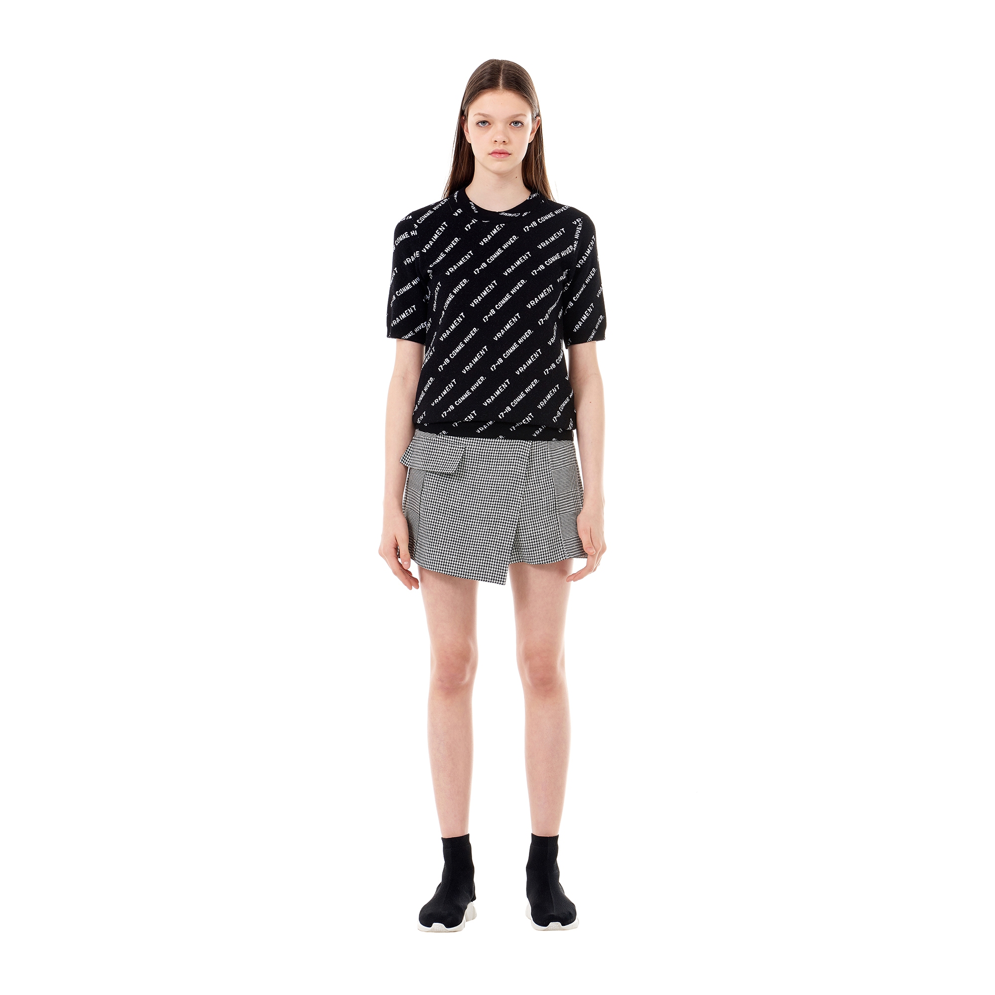 * 컬렉션 : 2018 Spring/Summer디자인 포인트 :- 하운드투스 패턴 디테일이 돋보이는 트렌디한 무드의 큐롯 팬츠- 메탈 버튼 장식 디테일로 포인트를 준 디자인- 신축성 있는 소재로 편안한 피팅감을 자랑하는 아이템스타일링 추천 : 다양한 블라우스 혹은 셔츠와 로퍼를 매치하여 트렌디한 스타일링을 할 수 있음
