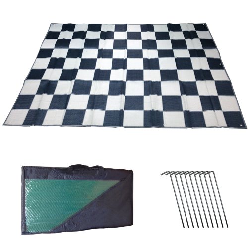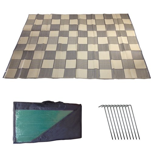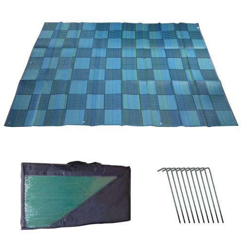 Studio : T.J. Trading, Inc. Publisher : T.J. Trading, Inc. Binding : Misc. Product Description Hollow polypropylene tubes are woven together to form an attractive and durable mat. Cleaning is easy with just some water or a few sweeps from a broom. Mildew is never a problem because the woven construction allows the water to drain. Each mat is light and can be folded into a very compact size for easy storage. Does not harm the grass. For long life, put away after each use. Great for R.V.s, outdoor events, camping, beach, and dog runs. Grommets throughout the mat, not just the corners. Comes with free ground stakes and reusable carrying case. 0