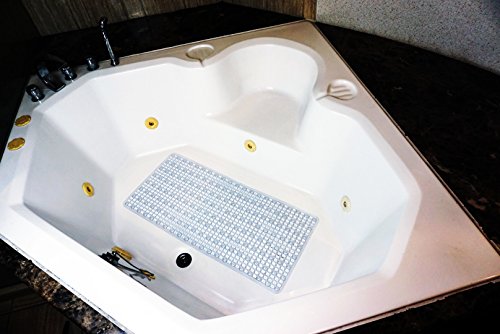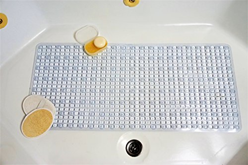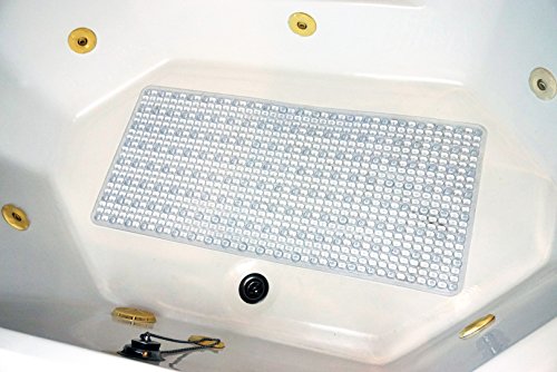 Bath Mat by Tubmats for Tubs: Non-slip, Anti-Bacterial, Non-Toxic, Very Mold Resistant, Draining, Strong Grip, Machine Washable, Massage Textured, Rectangle, Clear, 35''x16''